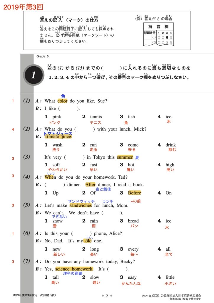 過去問2019-3 リスニング1~10 16~25、文法8~15をやりました。