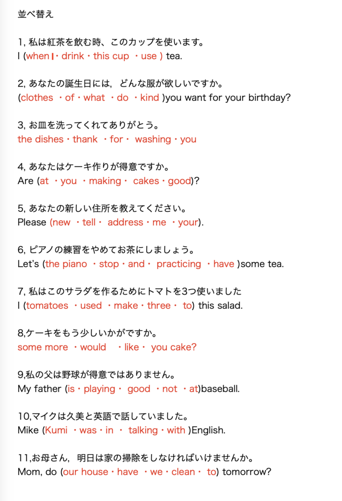 2,並べ替えの問題をやってみる