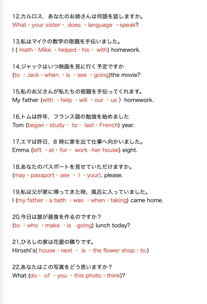 2,よく出るQuestionの英語を見て、すぐに意味がわかるかチェック