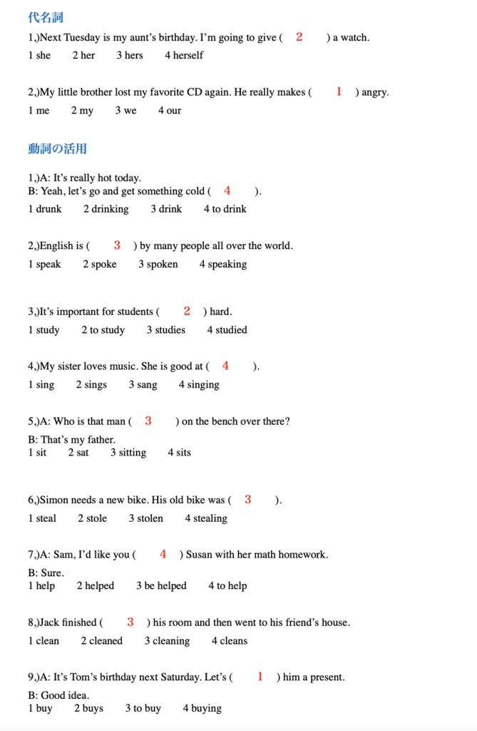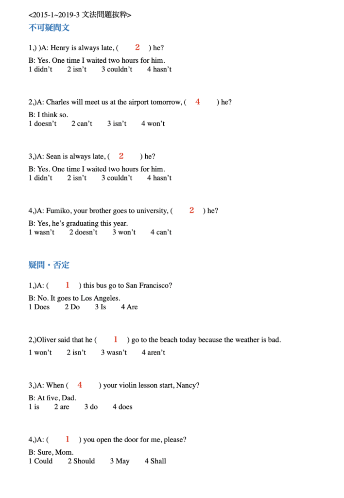 ★英検道場 文法第2部P5,11,17(次回テスト)
